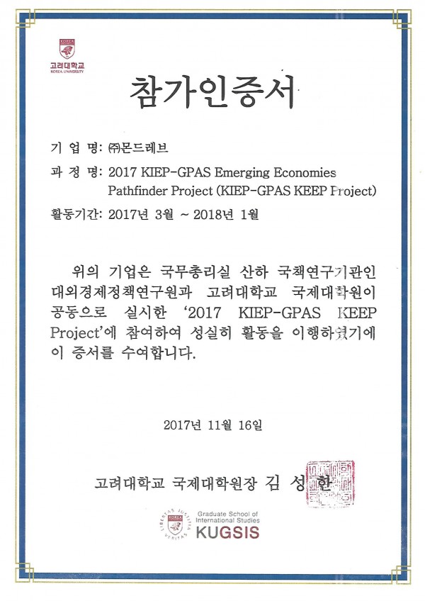고려대학교 대외정책연구원 참가인증서