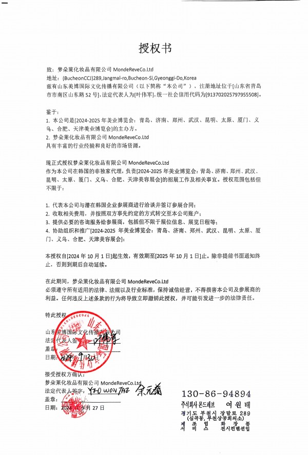 China Beauty Exhibition Signs Korean Agency Contract 관련링크 mondereve 3,306 0 본문 China Beauty Exhibition Signs Korean Agency Contract 중국 미용 뷰티 박람회 에이전시 계약 SHARE THIS PAGE 목록